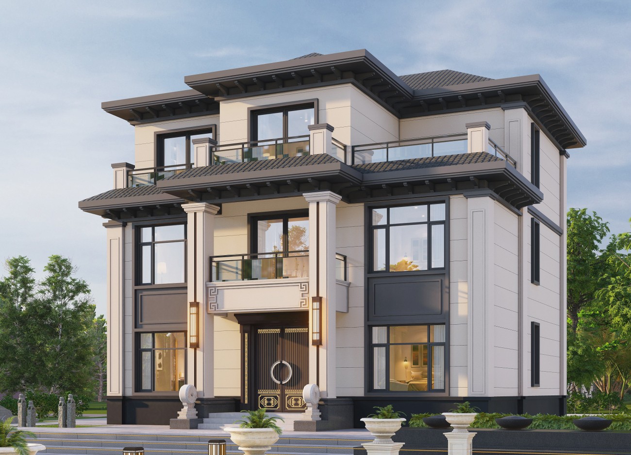 仙桃17 三层新中式(10x12米)-【易设计】